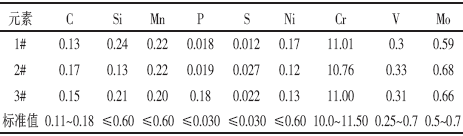 在1#、2#和3#調(diào)節(jié)閥上取樣,測試了調(diào)節(jié)閥的化學成分,分析結(jié)果如表1所示。由表1可知,3根調(diào)節(jié)閥的化學成分都符合標準B/HJ479-2006的規(guī)定。