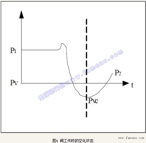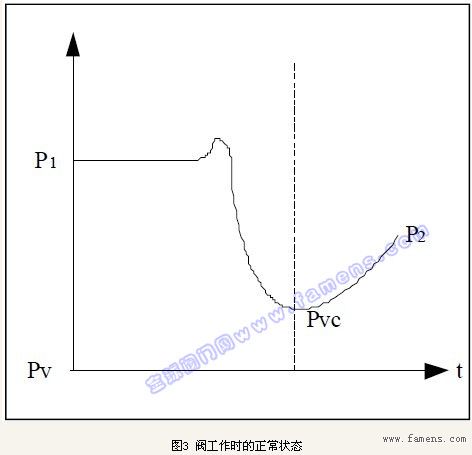 圖3用來(lái)表示流體介質(zhì)流經(jīng)閥體內(nèi)部的壓力變化:P1閥的入口壓力;P2閥的出口壓力;Pv閥入口溫度下的液體飽和蒸汽壓;Pvc流體縮流斷面的壓力。