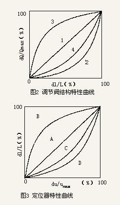 在沒安裝定位器的情況下,K1為一常數(shù)即閥行程與到閥控制信號成線性關系,此時調節(jié)閥的靜態(tài)特性即為其結構特性,無法改變;如果安裝了定位器,則K1即為定位器的性能特性。對于機械力平衡式定位器來說可以通過更換反饋凸輪來加以改變,而對于智能型定位器由于預先進行了程序設置,因此只需要通過功能鍵進行選擇就可以任意改變K1,從而改變調節(jié)閥的靜態(tài)特性。當現(xiàn)有調節(jié)閥的流量特性符合需要時,只需將定位器特性設置為線性。
