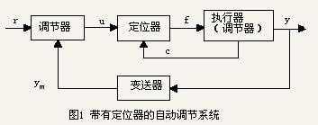要理解閥門定位器在一個過程控制系統(tǒng)中所扮演的角色,參看圖1。圖中r為被調量的設定值;y為被調量;y為被調量的測量值;u為調節(jié)器的輸出信號(與執(zhí)行器即調節(jié)閥的開度成一定的關系);f為定位器的輸出信號;c為閥門位置信號。定位器在此系統(tǒng)中的主要作用就是將從調節(jié)器來的調節(jié)信號(4~20mA或3~15psi)與從執(zhí)行器來的閥門位置信號相比較,判斷它們是否與預期的關系相匹配,如果相匹配,則定位器將使執(zhí)行器維持在此位置,否則將使執(zhí)行器動作直至兩信號相匹配。此外定位器的主要作用還包括改變閥的作用方式、靜態(tài)特性、實現(xiàn)分程控制等。