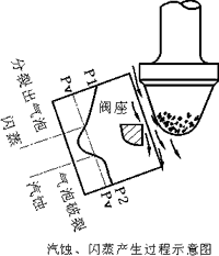 | 如果閥門上的壓差(P1-P2)大于了介質的最大飽和壓差(△Pmax),那么就會產(chǎn)生閃蒸, 由此再產(chǎn)生汽蝕,并對閥門內部及相鄰近的管道結構造成破壞。 | |