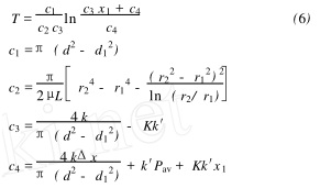 在實際流動過程中 , 閥門內部流道的流動狀態(tài)是三維的 , 由于控制裝置采用內外腔套層的結構形式 , 其內部的泄流間隙很小 , 可近似認為其流動狀態(tài)為層流 ( 圖2)。則由不可壓縮流體本構方程—廣義牛頓內摩擦定律和納維斯 - 斯托克斯方程??梢缘玫江h(huán)形間隙中流體的流量 Q 為